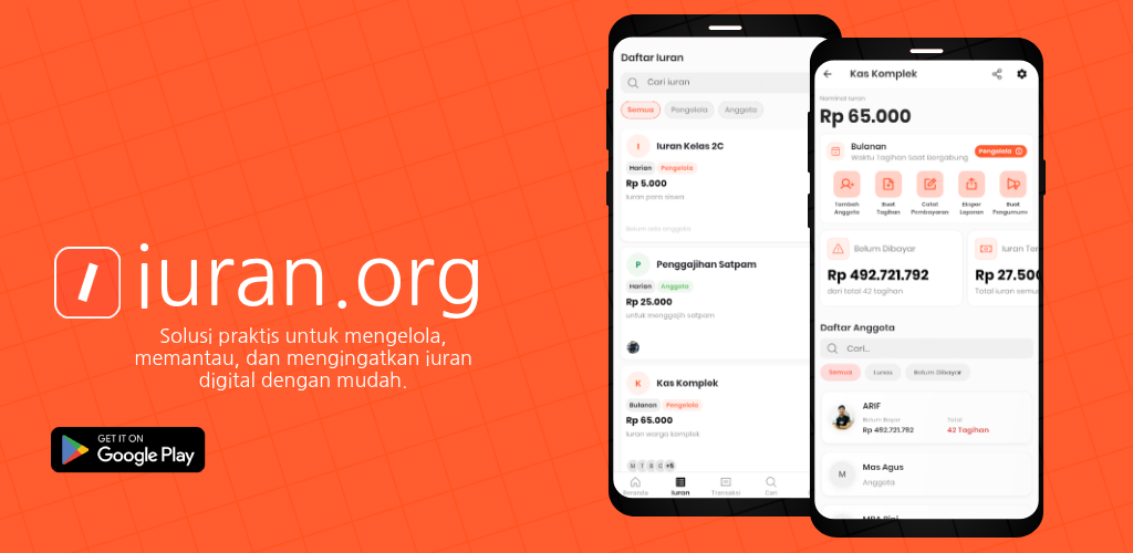 Maka dari itu saya membangun iuran.org - platform sederhana yang memudahkan pengelolaan iuran secara digital tanpa repot harus mencatat dan menagih setiap anggota iuran.